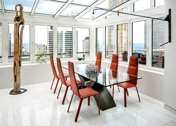 Haute Living worked with interior designer, Jan Jander, to produce the technical drawings of the client's systems furniture, as well as order fulfillment and management for other furniture, shipping logistics, and coordination of the successful delivery and installation of the project. Jan's design concept was to expose the concrete and create floating ceilings, brining in warmth through raw wood and organic elements. The design also called for opening up the space by eliminating interior walls to capture a North - South Axis on the 49th floor.